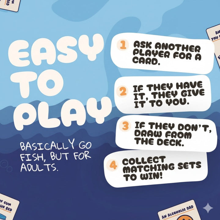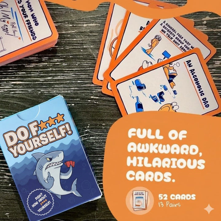 Take the classic Go Fish and crank it up! Packed with outrageous prompts and the iconic shout of “Do F*** Yourself!”, this 17+ deck turns any hangout into a no-filter laugh fest.