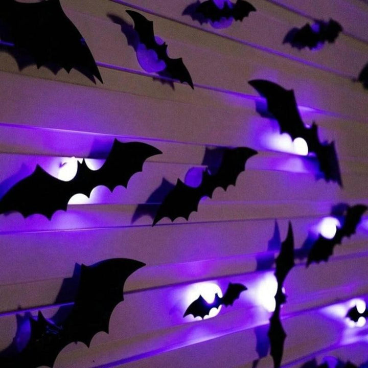 Choose from multiple bundles shown in the images; select standard 3D bats or the night-light version with LEDs. The LED option flashes red, purple, and blue for eye-catching nighttime effects—much bolder than ordinary paper decals.