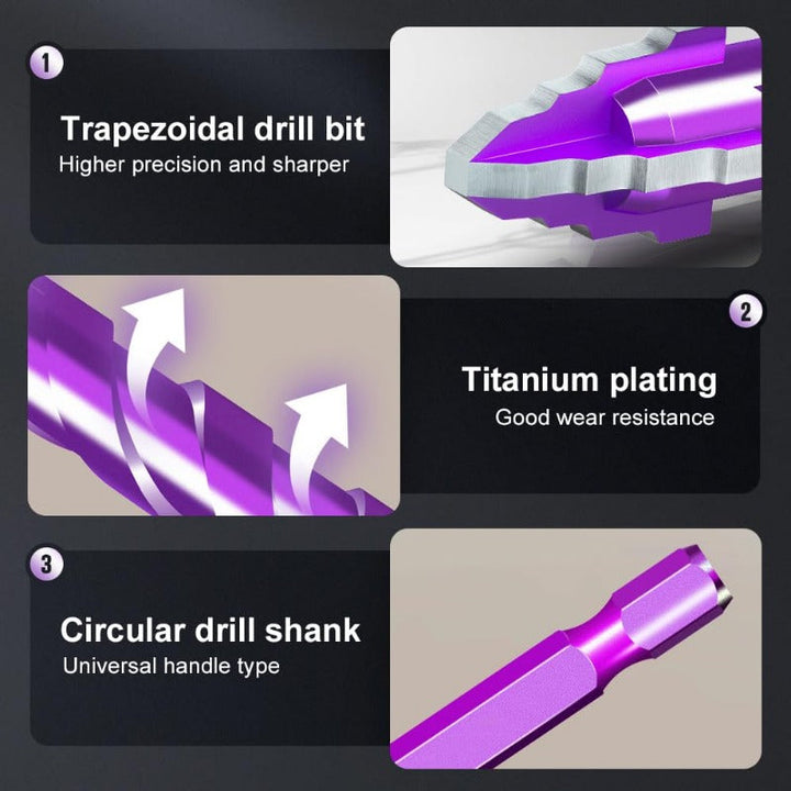 Bore through steel at dawn, then glide through porcelain by noon—the same tungsten-steel bit crushes stone, concrete, metal, wood & glass in record time.